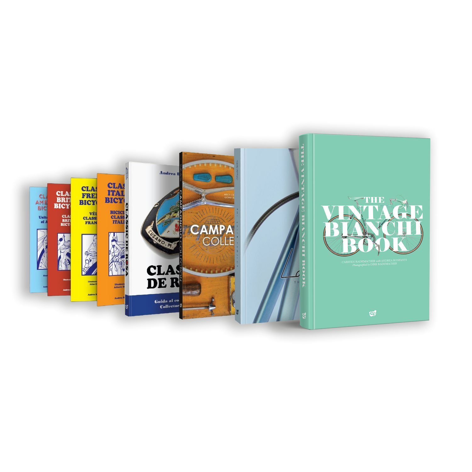 The new bible for vintage cycling enthusiasts and Bianchi collectors, dedicated to the evolution of Bianchi’s top-end racing bicycles from 1920 to 1990. It traces seven decades of innovation, documenting how frames, components, and technology, most notably the pioneering work of Campagnolo, shaped the bicycles that defined an era. From standard production models to extraordinary frames from the Reparto Corse, the book presents 40 iconic bicycles, once ridden by champions such as Fausto Coppi, Felice Gimondi, and Rudi Altig, alongside rare memorabilia. Every bicycle comes from the private collection of Carsten Rademacher, whose dedication has created one of the most complete Bianchi collections in the world. Photographed with precision and artistry by Dirk Rademacher, the book captures details often inaccessible, offering readers an technical view. First edition, hardcover format (17×24 cm), published in three languages (English, Italian, and German) within the same book. 350 pages with more than 500 photographs. Limited to 999 copies (not numbered), created to celebrate the "999" serial number once used for Bianchi’s Reparto Corse frames. Printed in Italy.